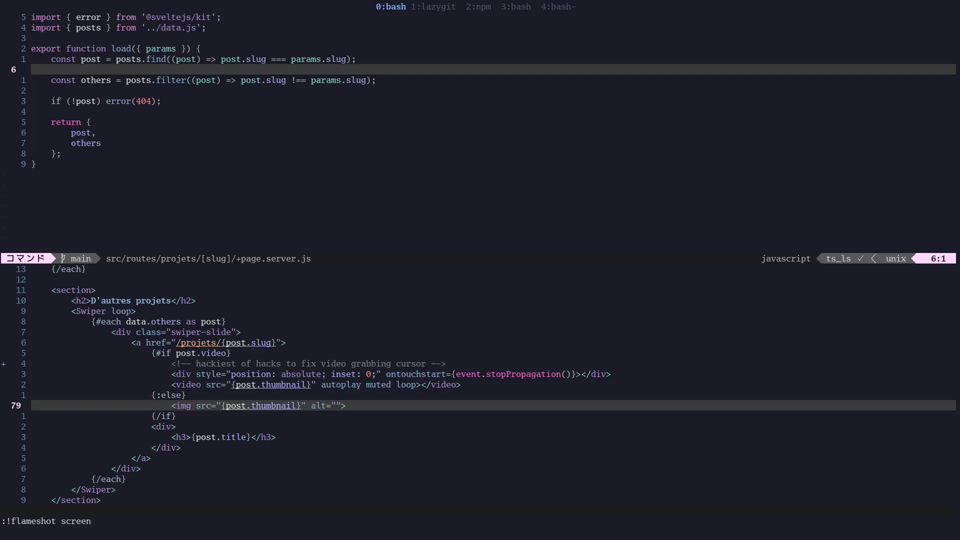 Il y a un même gabarit pour tous les projets, et les contenus sont insérés avec Svelte.