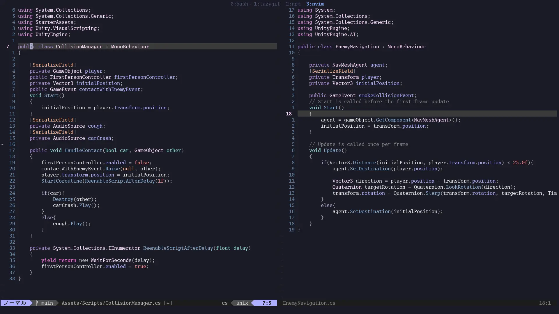 J'ai appris des nouveaux concepts de Unity et 				C#, notamment l'IA (à droite).